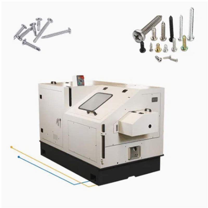 தானியங்கி திருகு தயாரிக்கும் இயந்திரத்தால் திருகுகளின் உற்பத்தி செயல்முறை பின்வரும் படிகளை உள்ளடக்கியது: உணவு அமைப்பு தானாக உலோக கம்பியை கணினியில் கொண்டு செல்ல முடியும். சுற்று தலை, கவுண்டர்சங்க் தலை அல்லது குவிமாடம் தலை போன்ற ஒரு திருகின் தலையில் வடிவமைக்க முன்னமைக்கப்பட்ட அளவுருக்களின்படி கம்பியை உருவாக்கும் அமைப்பு செயலாக்கும். நூல் செயலாக்க அமைப்பு திருகு தண்டு மீது நூல்களை இயந்திரமயமாக்கும். த்ரெட்டிங் அல்லது உருட்டல் போன்ற முறைகள் மூலம் இந்த செயல்முறையை நிறைவேற்ற முடியும். ஆய்வு முறை தயாரிக்கப்பட்ட திருகுகளின் பரிமாணங்கள் மற்றும் தோற்றம் குறித்து காசோலைகளை நடத்தும், மேலும் தரங்களை பூர்த்தி செய்யாதவை தானாகவே அகற்றப்படும். கட்டுப்பாட்டு அமைப்பு இயந்திரத்தின் மூளை போன்றது, முழு உற்பத்தி செயல்முறையின் வேகம் மற்றும் துல்லியம் போன்ற அளவுருக்களைக் கட்டுப்படுத்தும் திறன் கொண்டது.